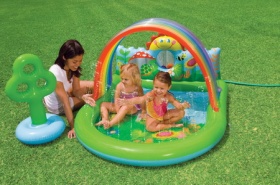 подключить к садовому шлангу. В наборе есть несколько надувных игрушек и